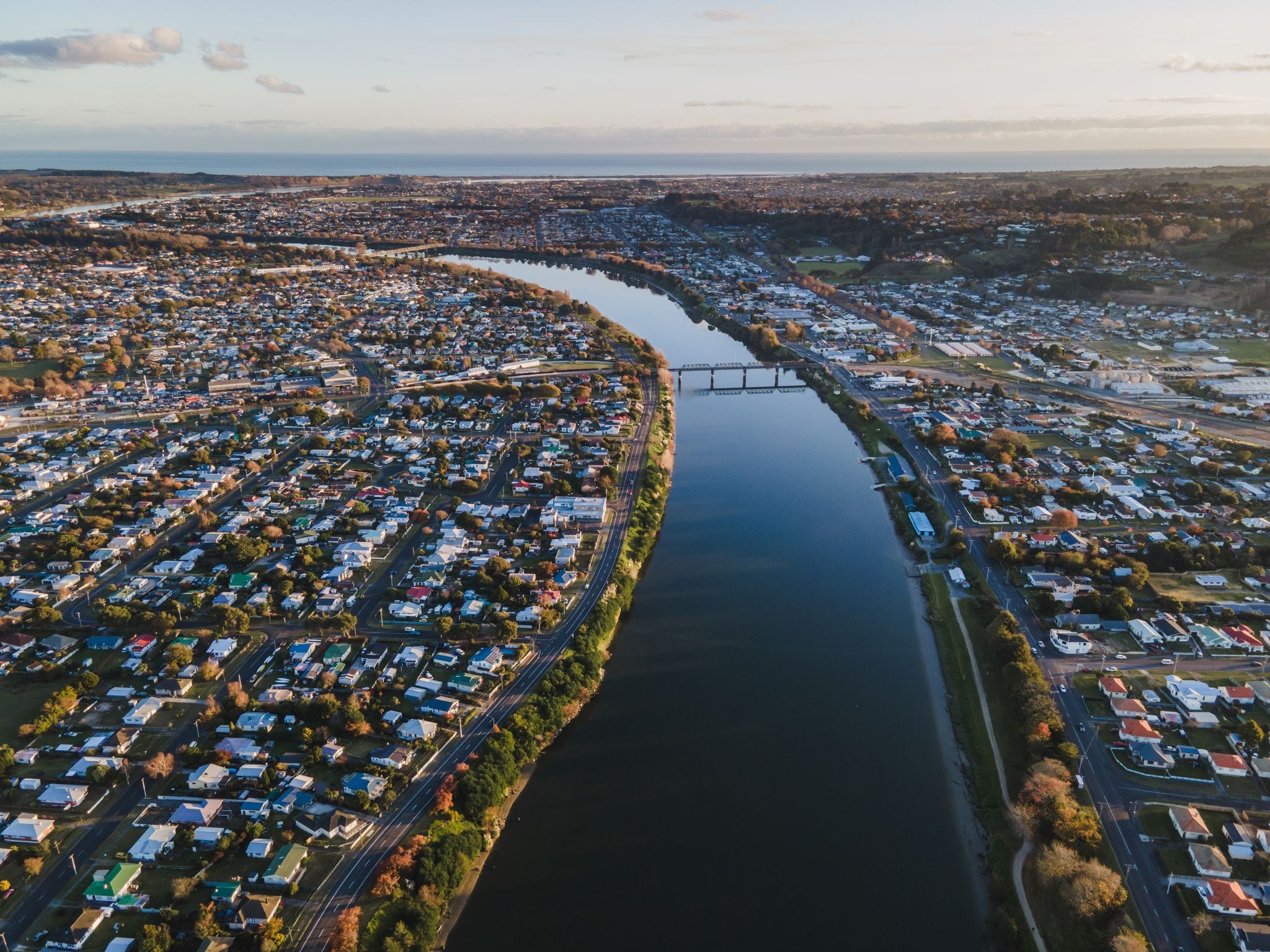 Whanganui is a city, and the Whanganui is a river.1 The city is home to around 40,000 souls, plus one: the river has famously been granted legal personhood. On the day after Thanksgiving we drove into town in a tired summer twilight, and the river was the first soul we met.
