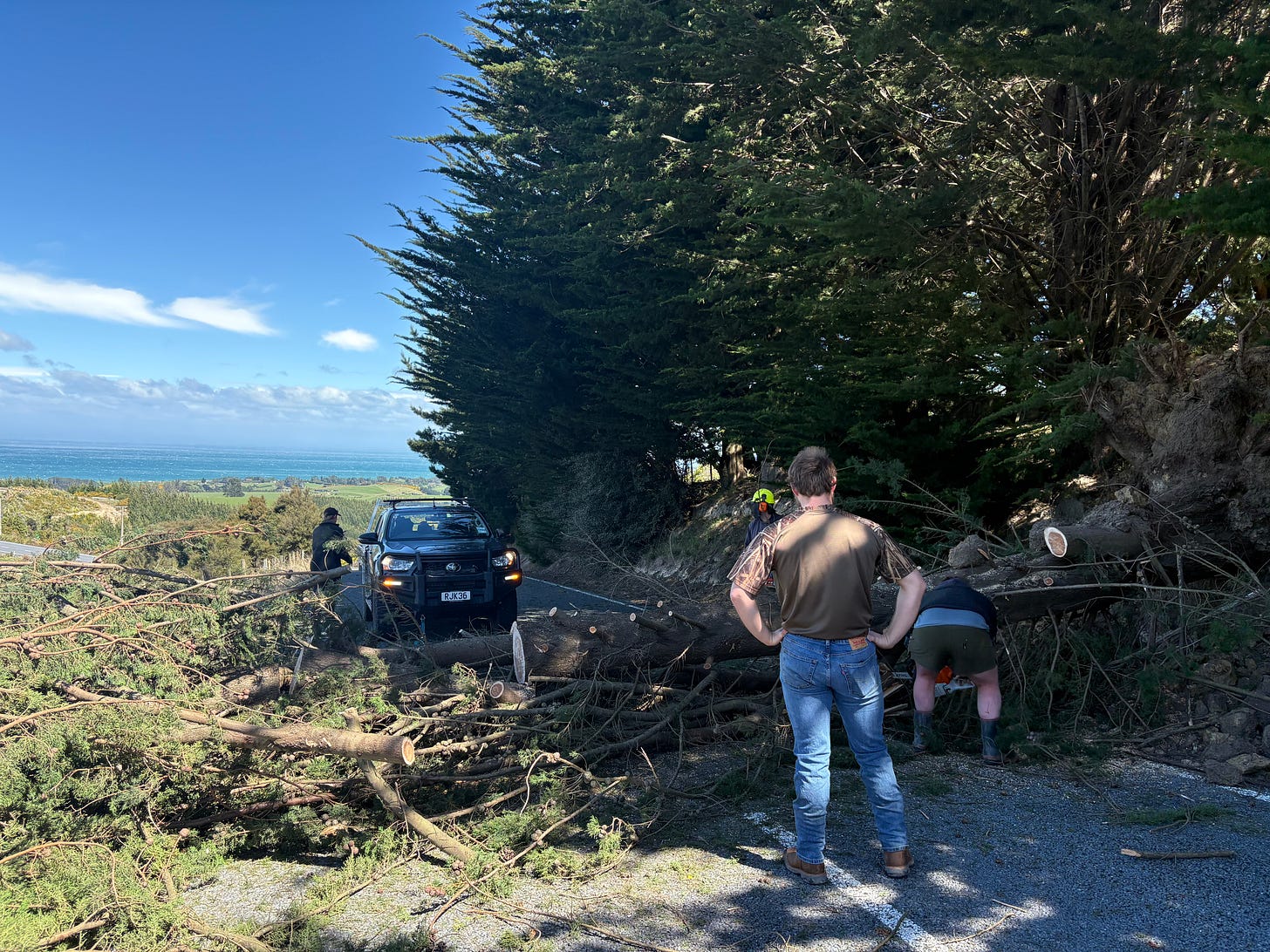 Last week’s hurricane-speed gales—three of them, scattered uneasily over seven spring days, some foretold and some out of the blue—laid down trees all over the Wairarapa. I could do a slide show here of dad-chat before & afters here, but I’ll skip to the winner above. This planet-size macrocarpa met its maker last Thursday night out on mate’s farm. You win, bro. No after-photo required.