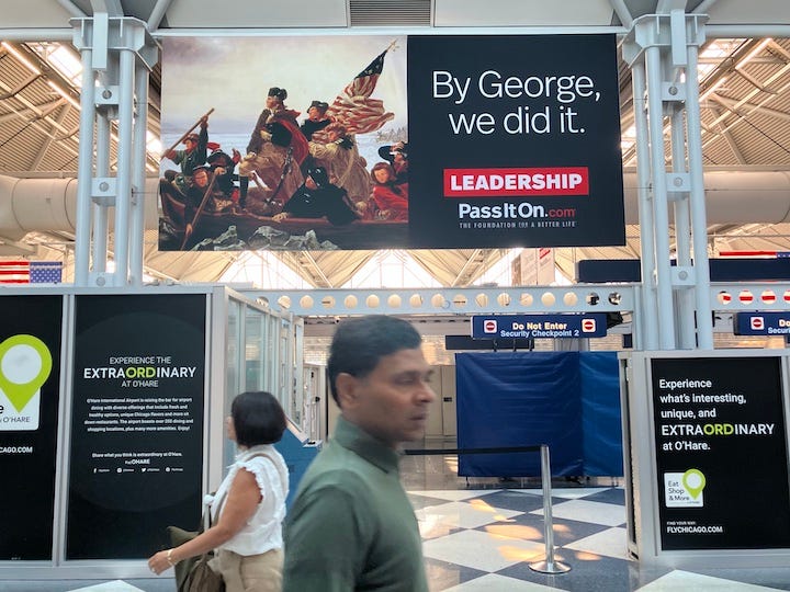 The PassItOn signs are getting desperate. The earnest billboard campaign for basic human values has been around for years, but now the values are getting even more basic. This one in O’Hare was like, at least we have a country! I saw one in Omaha for love, as in the romantic kind, like hey, maybe you should try this one weird trick?