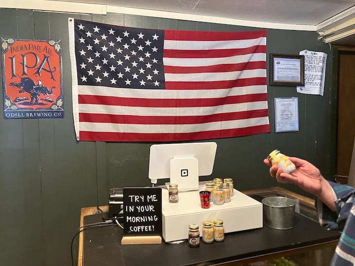 Alcoholic coffee creamers in single-serving jars by the register. “The message of many things in America is “‘Like this or die,’” wrote George W. S. Trow in 1981. A simplification for 2025: The message of many things in America is ‘Take drugs.’