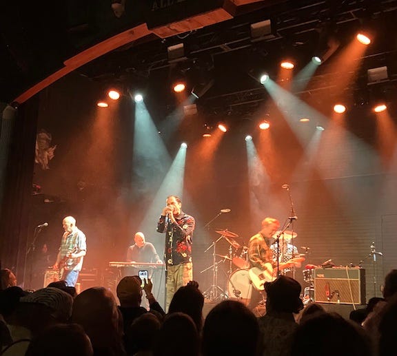 Fabled 80’s comedian Bobcat Goldthwait is the tour’s opening act and joyous cheerleader. “I’m a VHS comedian in a TikTok world,” he declares, and we all salute. In truth me and my boys—deep forties all, dead last of the Xers—are the kids of this crowd. Doug reports a mini-generation gap in the tour, too. Shannon and Narducy, both in their 50s, are devotees of R.E.M.’s jittery, urgent ‘80s stuff; they’re generally less big on the blockbuster ‘90s albums that swept in us tagalongs with anthems and warm hugs. The forward march of these tours, one album a year, will soon bring the debate to ahead. Shannon’s been teasing a run next year for 1987’s Document, which includes The One I Love and It’s the End of the World as We Know It, legit charting singles you still hear on what’s left of radio. Doug tells the story with a mischievous grin: “Next year they’re gonna have to play some HITS.”